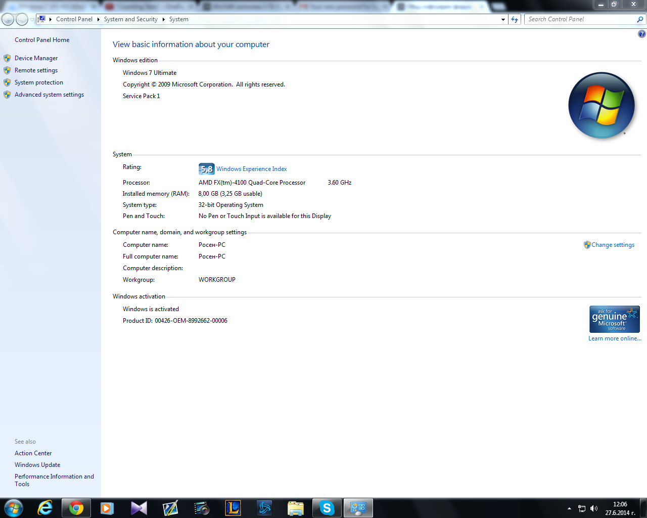 Çäðàâåéòå çàíèìàâàì ñå ñ êîìïþòðè íî ñúì ïîâå÷å ïî õàðäóåðíàòà ÷àñò,òà ìèñúëòà ìè å êàòî îòâîðÿ äàííèòå çà êîìïà ìè îò äÿñíî êîï÷å íà my computer ìè ïèøå 8ãá èíñòàëèðàíè (3,25 ãá èçïîëçâàåìè) è òîãàâà ñå ñåòèõ çà äóìèòå íà 1 ìîé ïðèÿòåë êîéòî å òî÷íî òàêúâ êîìïþòúðåí ñïåöèÿëèñò,÷å íÿêîé âåðñèé íà windows ÿäàò îò ðàìòà íî ìèñëåõ ÷å ñà ñàìî starter edition âåðñèéòå íî ñåãà ñúì 32 áèòîâ óëòèìåéò è ïàê 8 ãá 3,25 èçïîëçâàåìè äðóãèòå 4,75 ñå ãóáÿò áîã çíàå êúäå,àêî ìîæå äà ìè ïîìîãíåòå äà ìè êàæåòå êàêúâ OS äà ñè ñëîæà ÷å äà ìè ÷åòå âñè÷êèòå 8 ùå ñúì âè áëàãîäàðåí