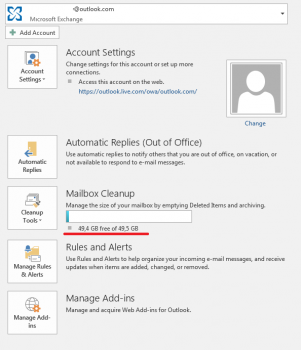 The Outlook.com mailbox size is unlimited but when it suddenly increases with several GB within a day (like when importing/uploading your pst-file into Outlook.com), you may need to wait a few days before more storage space becomes available.MSI Pro Z690-A, i5-13600k@P51;E41, Thermalright FC140; 32GB DDR4 Fury Renegade 3600@3800MHz; Asrock RX6700XT 12GB , CRUCIAL MX300 750GB & KINGSTON KC2500 1TB, SAMSUNG SH-222, Seasonic 850W Gold, FD Define R5; 34" Dell S3422DWG [Mobile: Samsung S21 FE]