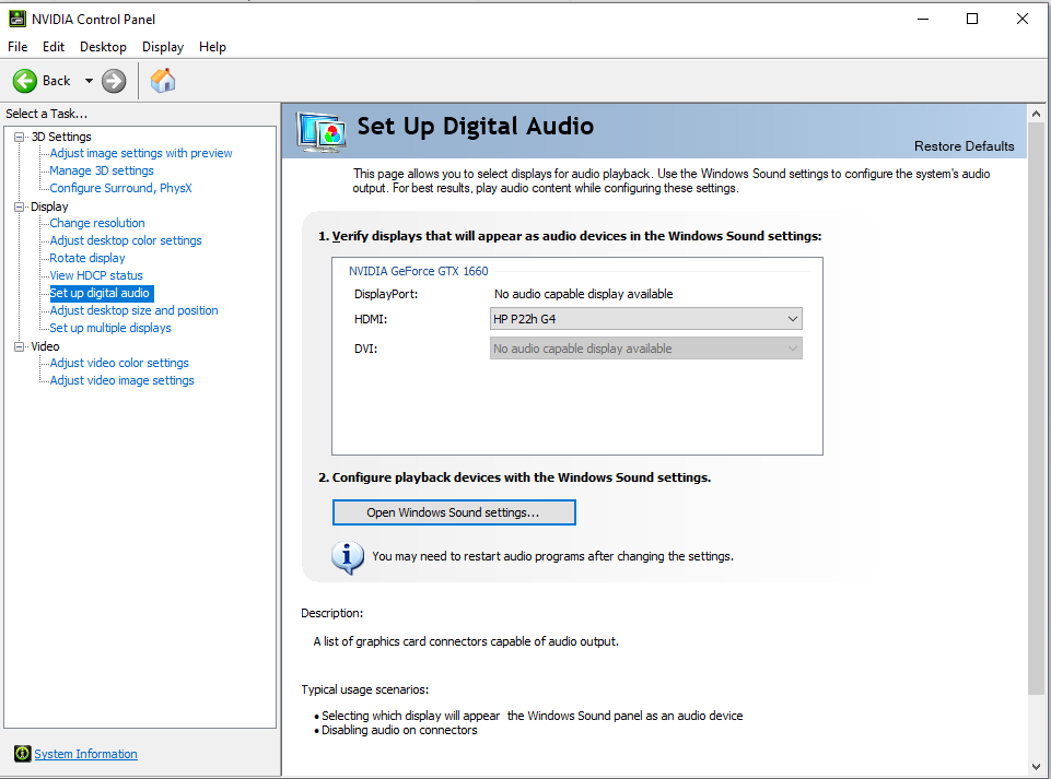 device manager, . . nvidia / ? 'open windows sound settings', .